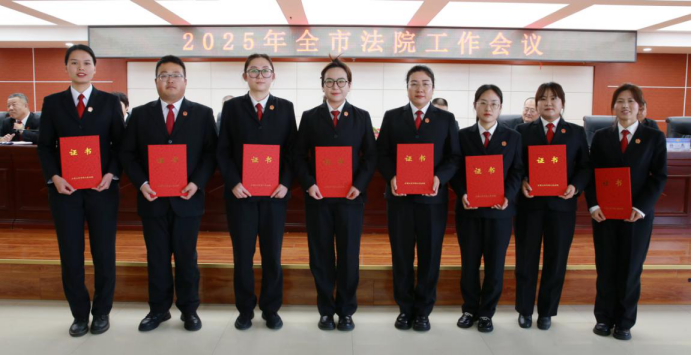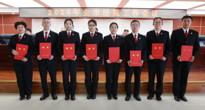 三县区法院院长和中院相关部门负责人围绕2025年工作思路作表态发言。中院院领导、中层干部,全体员额法官和法官助理,基层院政工科、审管办负责人以及受表彰的标兵参加会议。