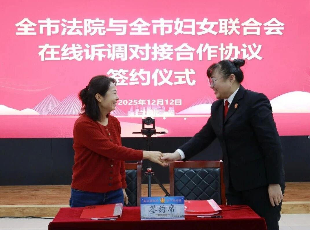 12月12日,石嘴山市两级法院与石嘴山市、县(区)妇女联合会共同召开婚姻家庭纠纷“总对总”在线诉调对接合作协议签约仪式暨座谈会,进一步巩固完善预防化解婚姻家庭纠纷工作机制,拓展妇联和法院深度合作提升调解效能,依法保护妇女儿童合法权益。