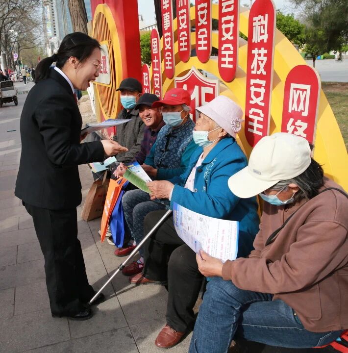 上午9时,干警们在公园人流密集处设立法律咨询服务台,悬挂宣传横幅,摆放精心编印的国家安全知识手册、普法折页等,用通俗易懂的语言为来往群众讲解“什么是国家安全”“公民维护国家安全的义务有哪些”“日常生活中如何防范安全风险”等内容。