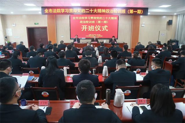 开班仪式上,中院党组副书记、常务副院长吴国云就开展好此次政治轮训提出要求:一是要思考“为啥学”,充分认识学习贯彻党的二十大精神的重要意义。党的二十大首次对坚持全面依法治国、推进法治中国建设作出了专题部署,对严格公正司法作出系统安排,对人民法院提出了重大时代命题。学习好宣传好贯彻好党的二十大精神,是全市法院当前和今后一个时期的首要政治任务和重大政治责任,全体干警特别是领导干部要发挥好“关键少数”带头示范作用,以高度的政治自觉、强烈的责任担当、务实的工作作风,在持续深入学习贯彻党的二十大精神中带好头、走在前、作表率。二是要立足“怎么学”,在全面学习把握上学深悟透党的二十大精神。坚持把党的二十大精神的学习同习近平总书记系列重要讲话和相关文件紧密联合起来,同贯彻落实党中央决策部署、区市党委和党委政法委及上级法院工作要求紧密结合起来,同深化改革开放、推动高质量发展、有效应对重大风险挑战的具体实践紧密结合起来,通过系统学、联系学、深入学,深刻领悟党的二十大关于党和国家事业发展大政方针和战略部署的历史逻辑、理论逻辑、实践逻辑,增强贯彻落实的坚定性与自觉性,切实把学习成果转化为真抓实干的精气神和忠诚担当的实际行动。三是要围绕“怎么干”,推动党的二十大精神全面贯彻落实。聚焦关系石嘴山法院长远发展的重大问题、人民群众关注的热点难点问题,以“六项能力水平提升工程”为总牵引,深入思考“新征程上石嘴山法院怎么办和怎么干”的路径措施,切实将党的二十大提出的新思想、新观点、新论断、新方略转化为补齐发展短板、加快赶超跨越的具体举措,增强推动发展、服务群众、防范化解风险的本领,有力有效推动党的二十大精神在石嘴山法院落地生根、开花结果,以高质量司法服务高质量发展,为谱写石嘴山法院工作现代化发展新篇章作出积极的贡献。
