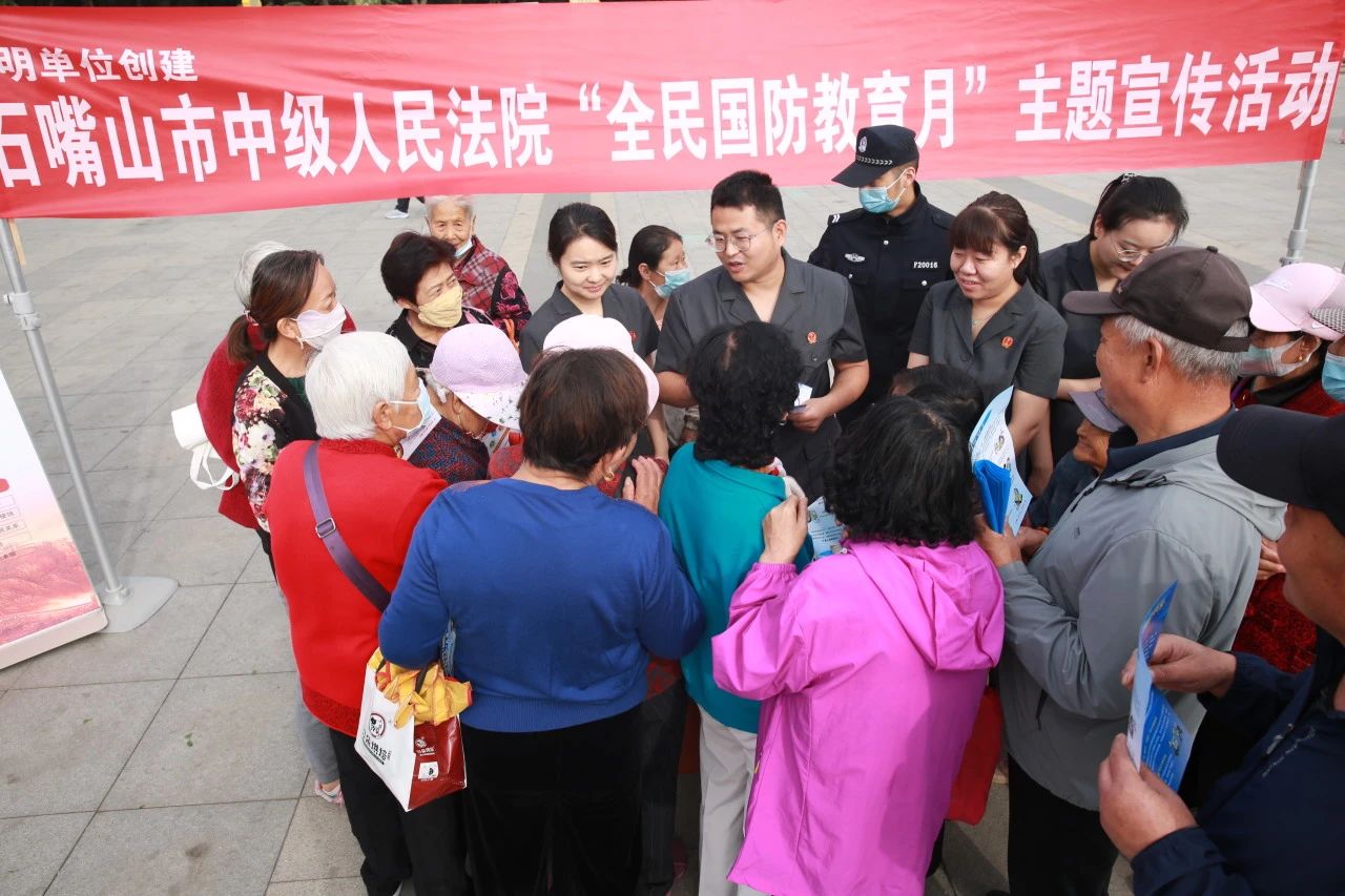 9月22日,石嘴山市中级人民院组织干警在青山公园开展“踔厉奋发强国防 勇毅前行向复兴”主题“全民国防教育月”普法宣传活动。