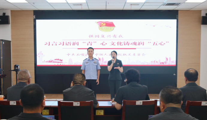 7月1日,石嘴山市中级人民法院开展“习言习语润‘青’心,文化铸魂润‘五心’”诵读活动,各青年干警理论学习小组围绕学习习近平总书记关于党的建设、青年工作、政法工作、坚持以人民为中心等方面的经典论述,创新形式读原文、学原著、悟原理,感悟精神内核、汲取奋进力量,共同庆祝建党103周年。