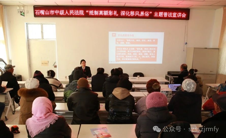 近日,石嘴山市中级人民法院深入惠农区礼和乡永平村开展“抵制高额彩礼 深化移风易俗”普法宣传活动,着力培育文明向上婚恋文化,引导群众树立正确婚嫁观念,进一步将农村高额彩礼专项治理工作落到实处。