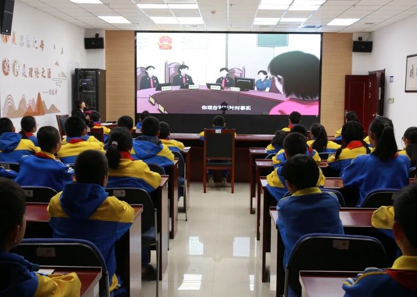 在校园欺凌法治讲堂上,法院干警通过播放校园霸凌短片、情景分析、法律解读等方式,用直观的画面、通俗易懂的语言和生动鲜活的案例,详细介绍了“权利说明书”——《中华人民共和国未成年人保护法》和“行为红绿灯”——《中华人民共和国预防未成年人犯罪法》,引发“小小体验官”们的深刻思考,帮助大家掌握如何鉴别和应对校园里的“不友好行为”。
